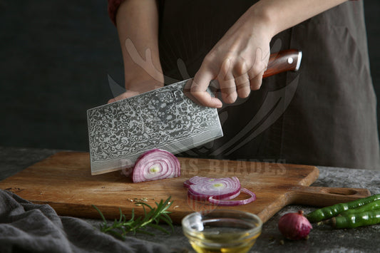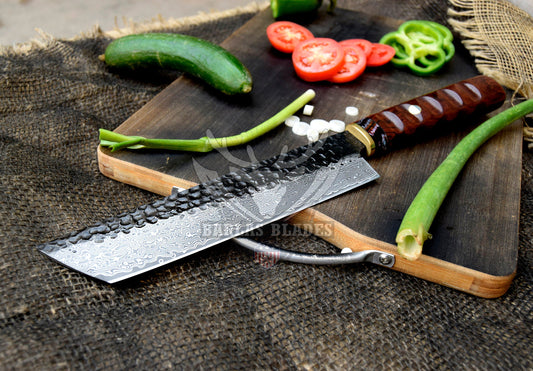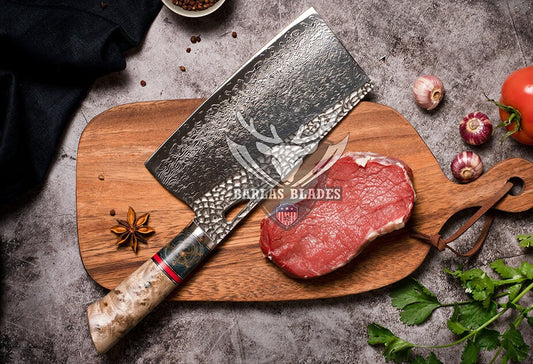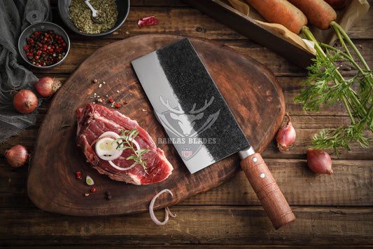 BRBLD Hand Forged Chef Cleaver Knife High Carbon Steel Blade Wood Handle