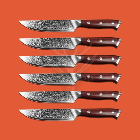 BRBLD 67 Layers Damascus 6 Pcs Steak Knife Set