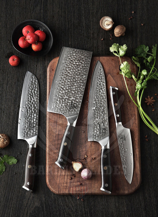 BRBLD 67 Layers Hammered Damascus Steel 4 Pcs Chef Knife Set Black Handle